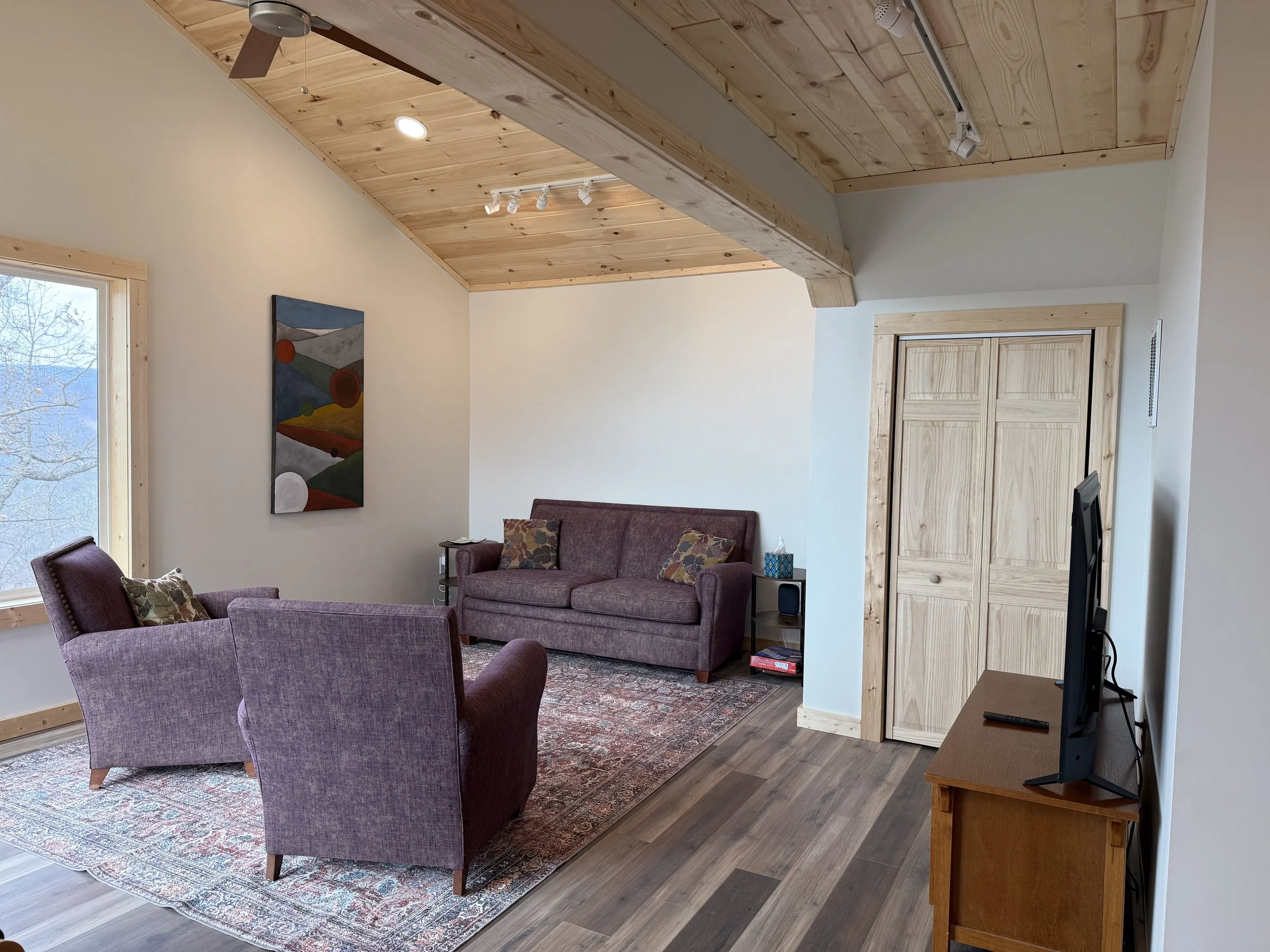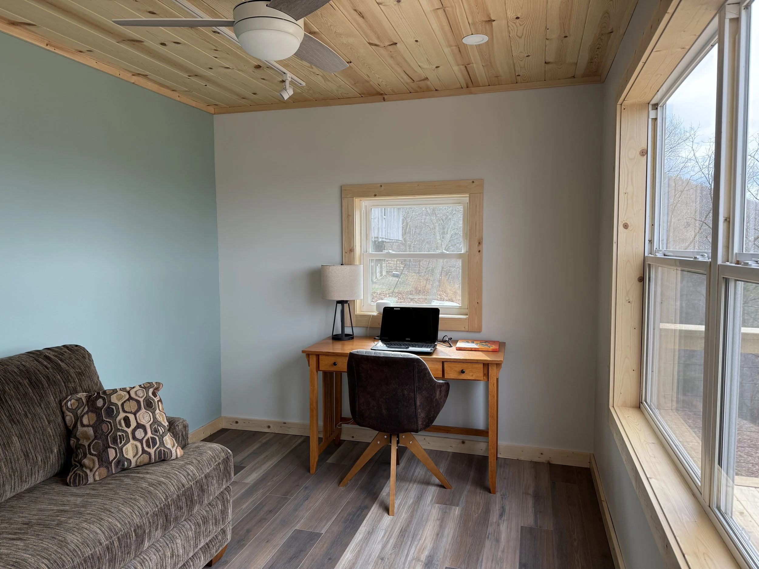 With flex space on the lower level and office space in the house plus access to a 600 square foot studio space in the barn Eagle Feather Cabin is a perfect retreat for writers, artists or musicians.